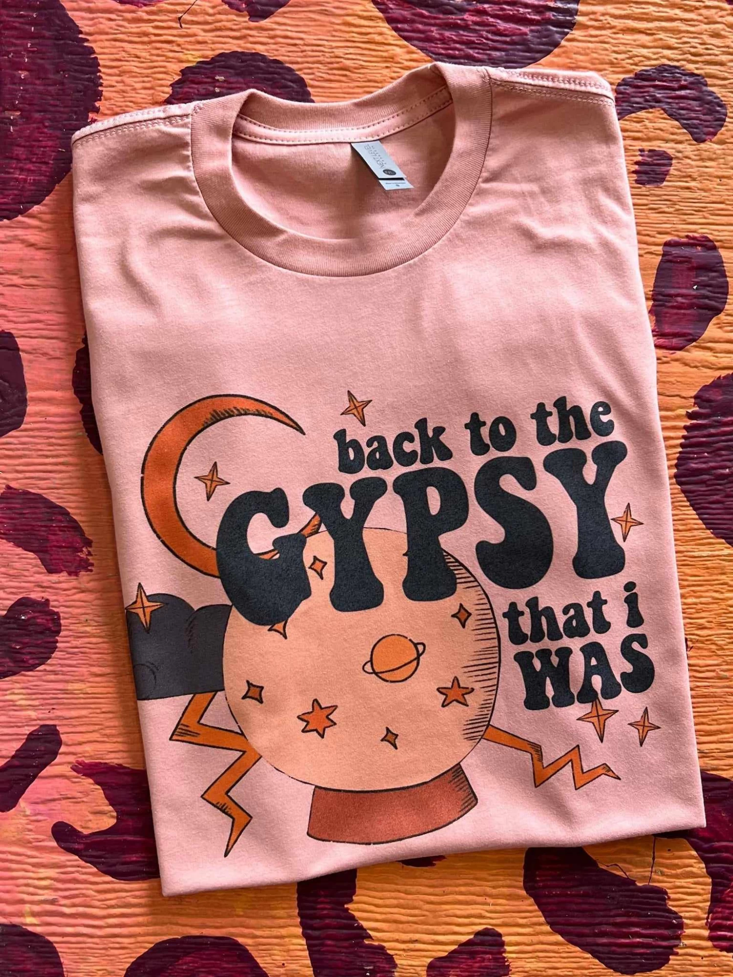 How cute is this t-shirt! Back to the Gypsy that I was. Perfect for our little gypsies out there! This tee is part of the Celestial Collection. Printed on a supersoft unisex tee. Desert Rose colored.