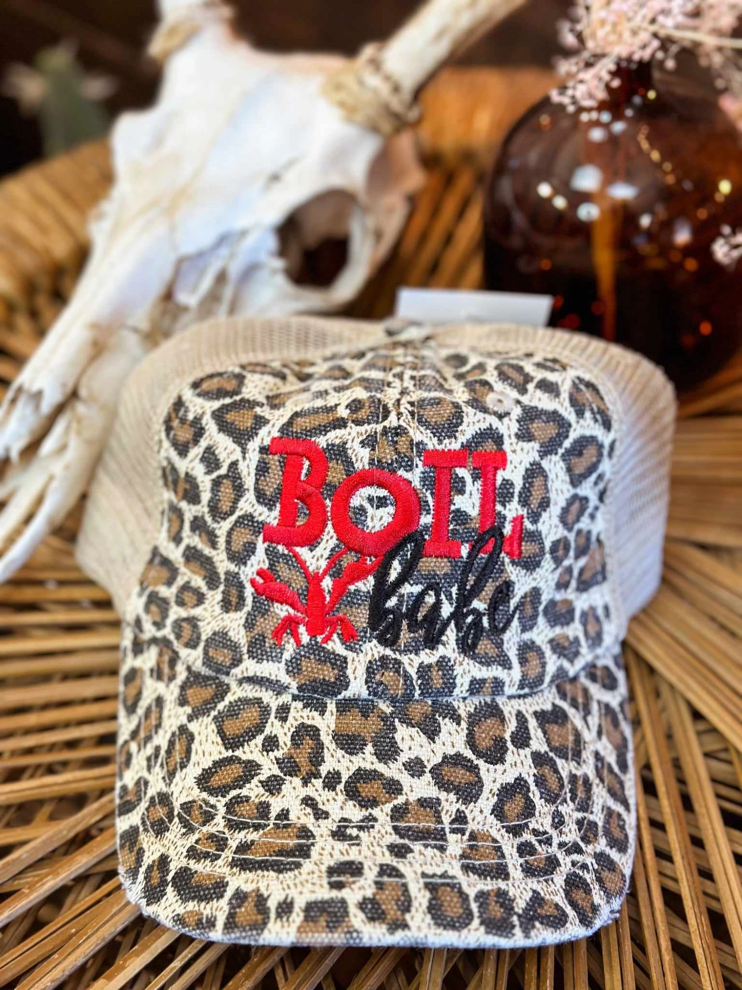 Boil Babe! The hat for the chic who loves crawfish season! Leopard print hat with tan mesh back for breathability! Adjustable and fits most!