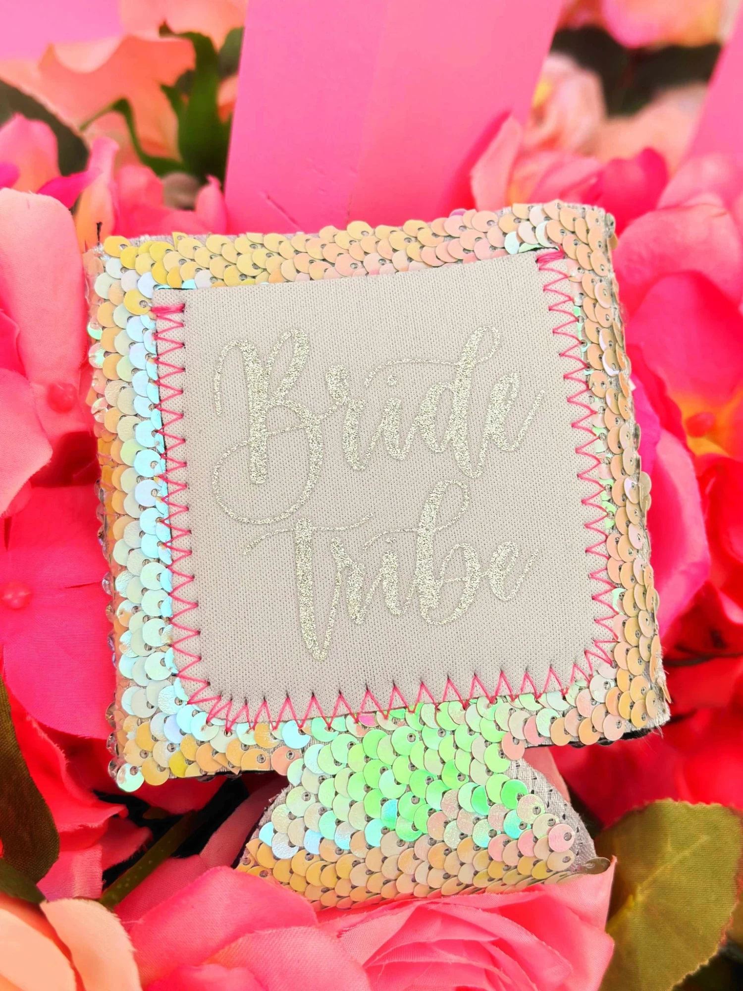 Perfect can sleeves to keep you drinks icy cold all summer long with the Bride Tribe! In sassy iridescent sequins, all the women at your next bridal bash will be drinking in style!