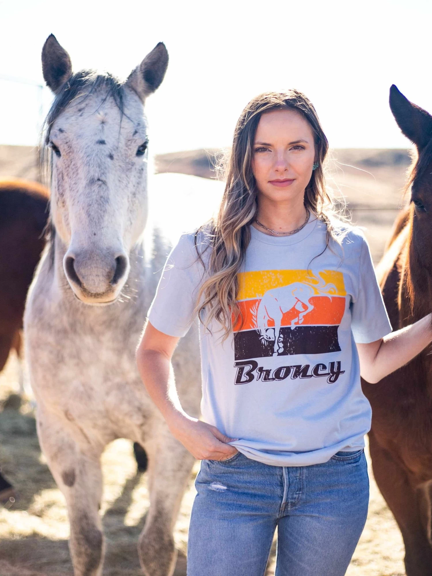 Broncy. Don’t get thrown off! Graphic tees are a must have. You can never have too many. Perfect for dressing up your sequin dusters! Keep them casual pairing with your favorite pair of denims! This light blue t shirt features a bucking bronc! A must have for the punchy western !