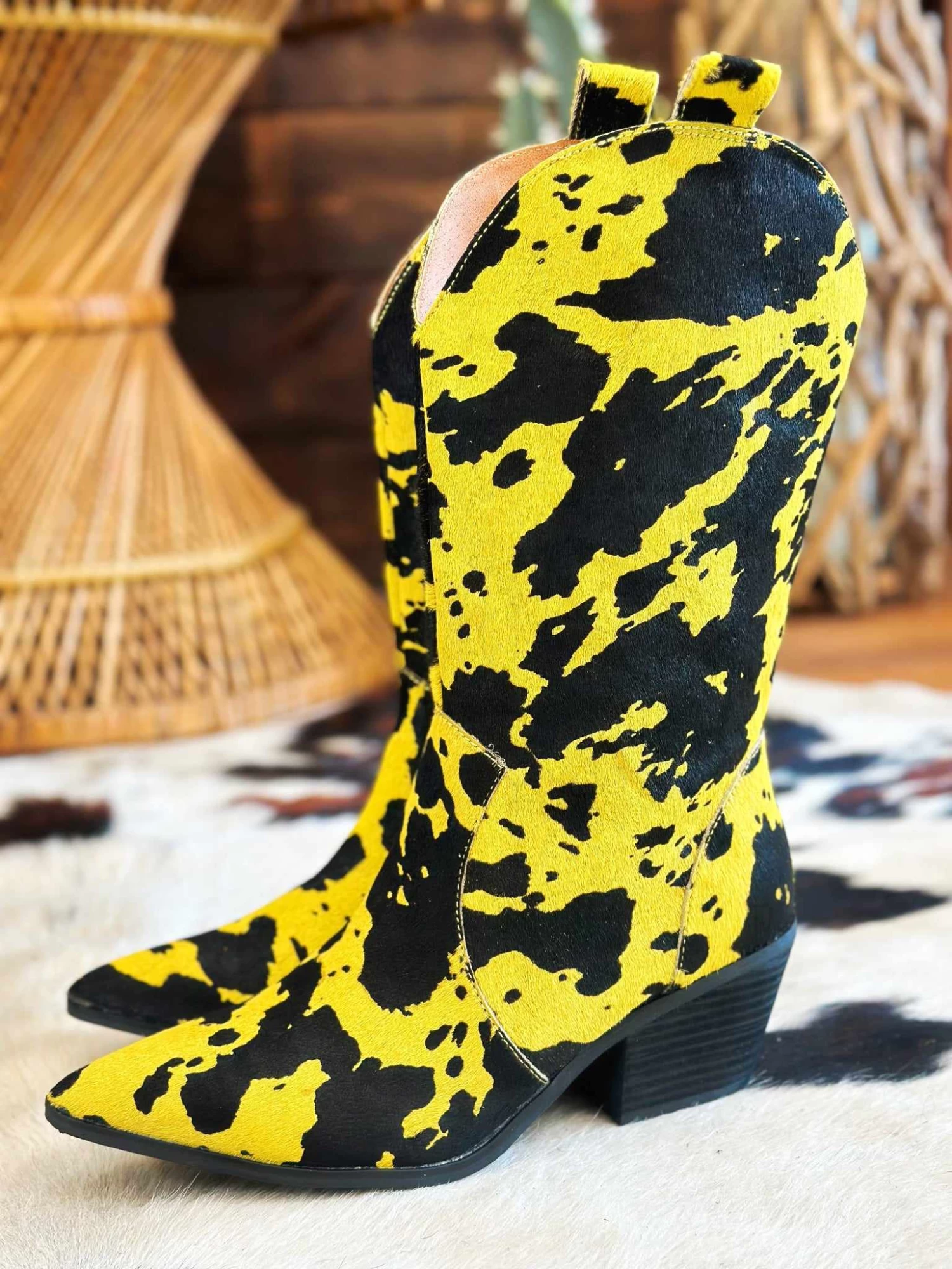 Yellow and Black Cow Print Boot