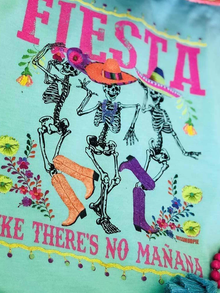 Fiesta like there’s no maÅ„ana. For all of the drinkers out there! How cute is this for Cinco de Mayo festivities?! Printed on a soft style canvas tee!