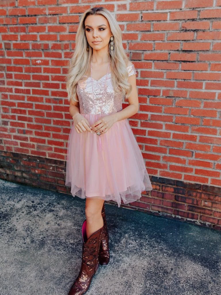 It’s the dress that dreams are made of. Featuring an off-the-shoulder style sequin top and a frilly, flowy, and fun, fully lined tulle skirt, the Friday Night Lights Gold and Peach dress is the perfect dress for you to wear while dancing the night away. Â