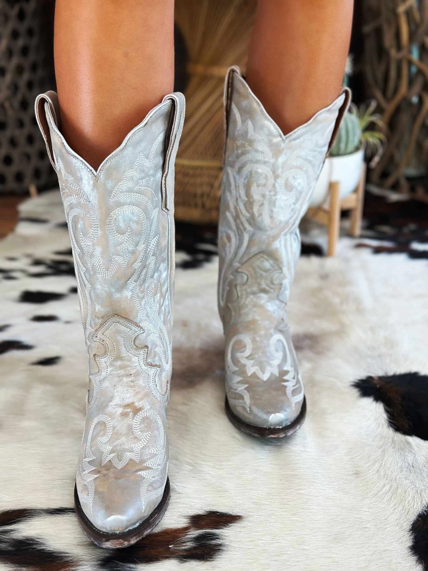 Frost Bite Boots – they leave you SPEECHLESS! Look as cool as the other side of the pillow in these Frost Bite Boots by Dan Post! These leather stunners will have heads turning with their silver metallic snip toe. Perfect for every day style or for the soon to be blushing bride! Get ready to show off your chic style with these Frost Bite Boots! 🤩 Made by Dingo from Dan Post.