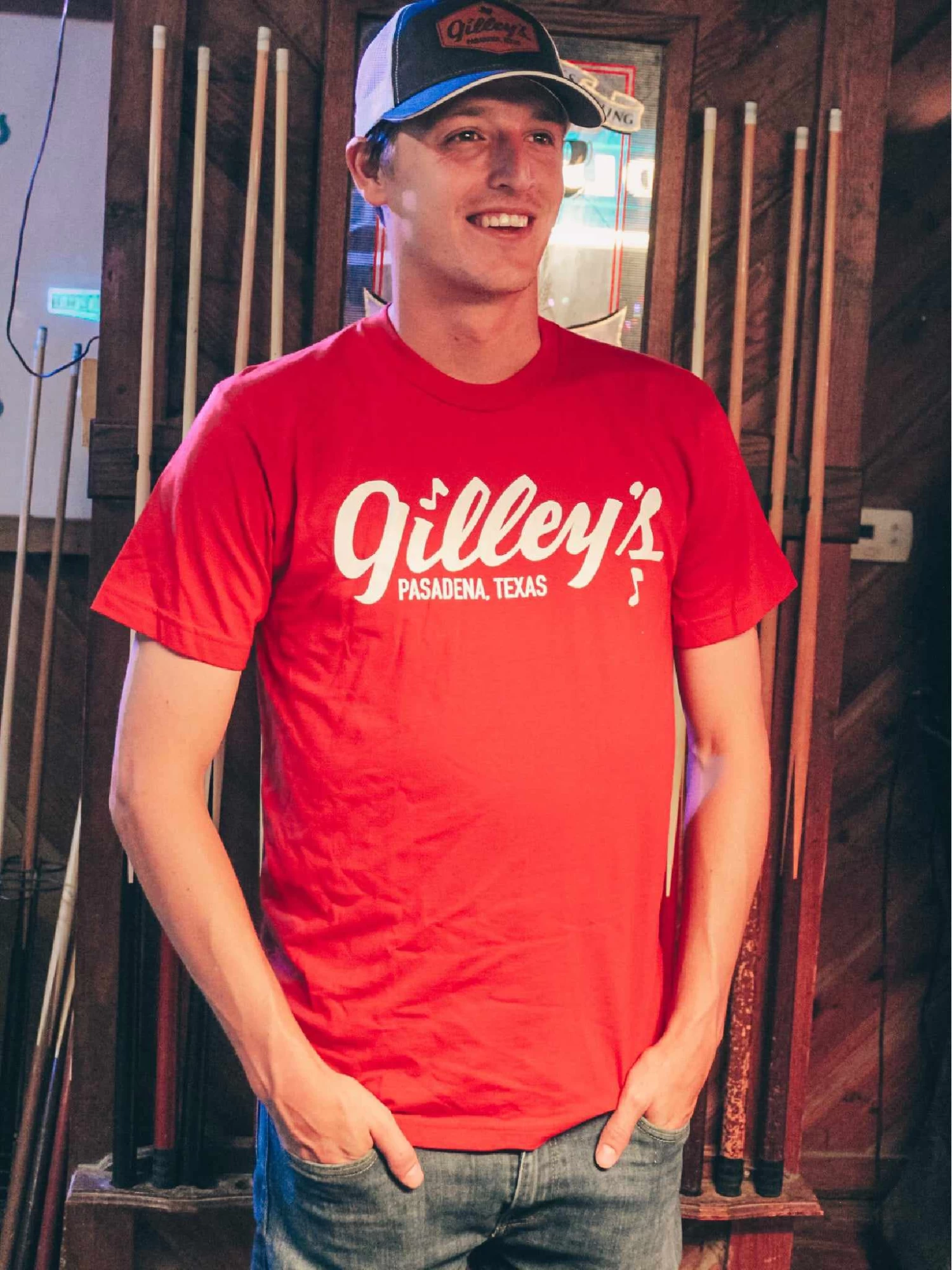 Red t-shirt with the Gilly’s Bar logo – perfect for the urban cowboy (or girl) in your life! This Gilly’s t-shirt is unisex with a loose comfy fit. Perfect for everyday wear or fin night’s out at your local honky-tonk!