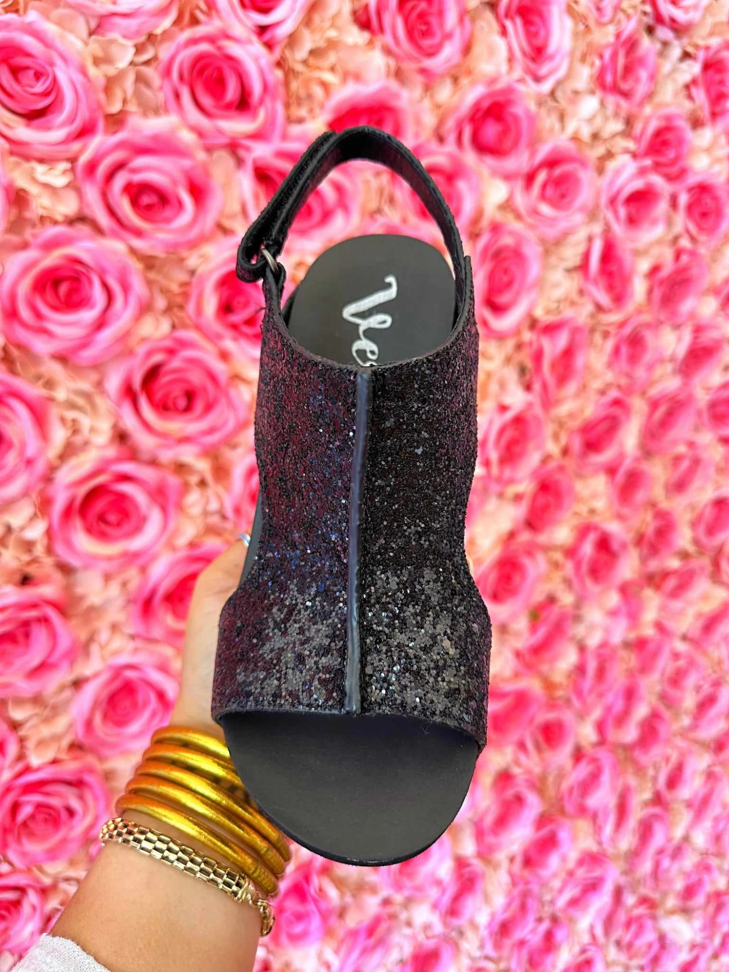 Brighten up your look with the Glitter Culver Wedge! With a velcro strap back and an open toe, this comfy wedge will have you turning heads and adding sparkle to your summer wardrobe! So, go ahead, shine on!