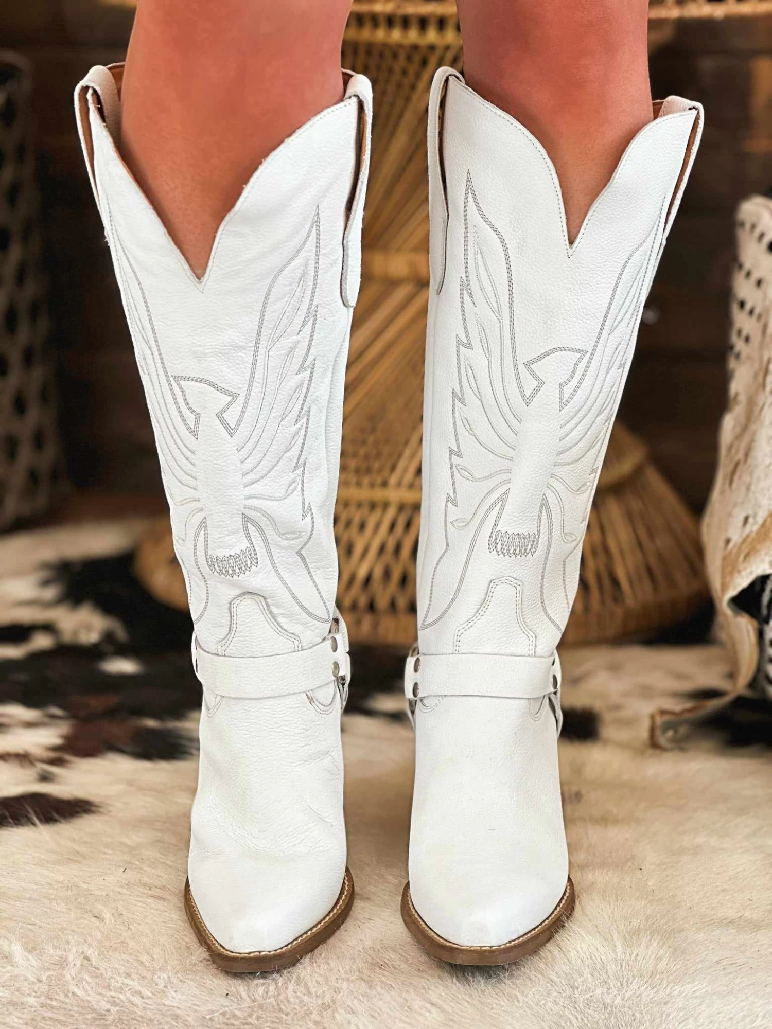 Heavens To Betsy Boots – they leave you SPEECHLESS! This boot is simply divine! It’s made of the finest white leather, with great stitching, and an unbelievably awesome buckle – you’ll wish you had a pair in every color! Heavens to Betsy, you’ve gotta get you some of these boots! Made by Dingo from Dan Post.Â