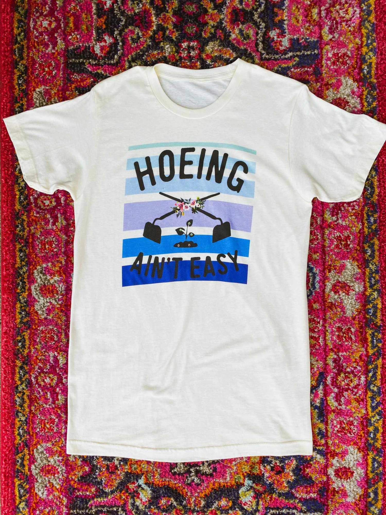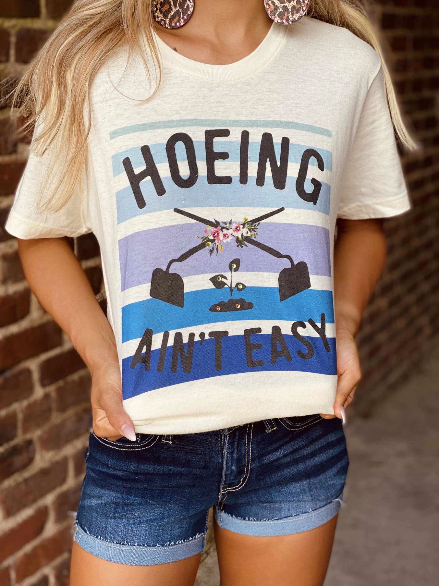 HOT SELLER ALERT! This tee is for all of our gardening chics! Hoeing Ain’t Easy Tee is custom made just for you! True to size, unisex tee. Perfectly paired with leggings or jeans! Bling option available.