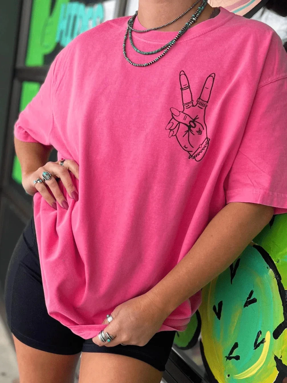 Printed on Comfort Color unisex tees. Vineyard colored tee.