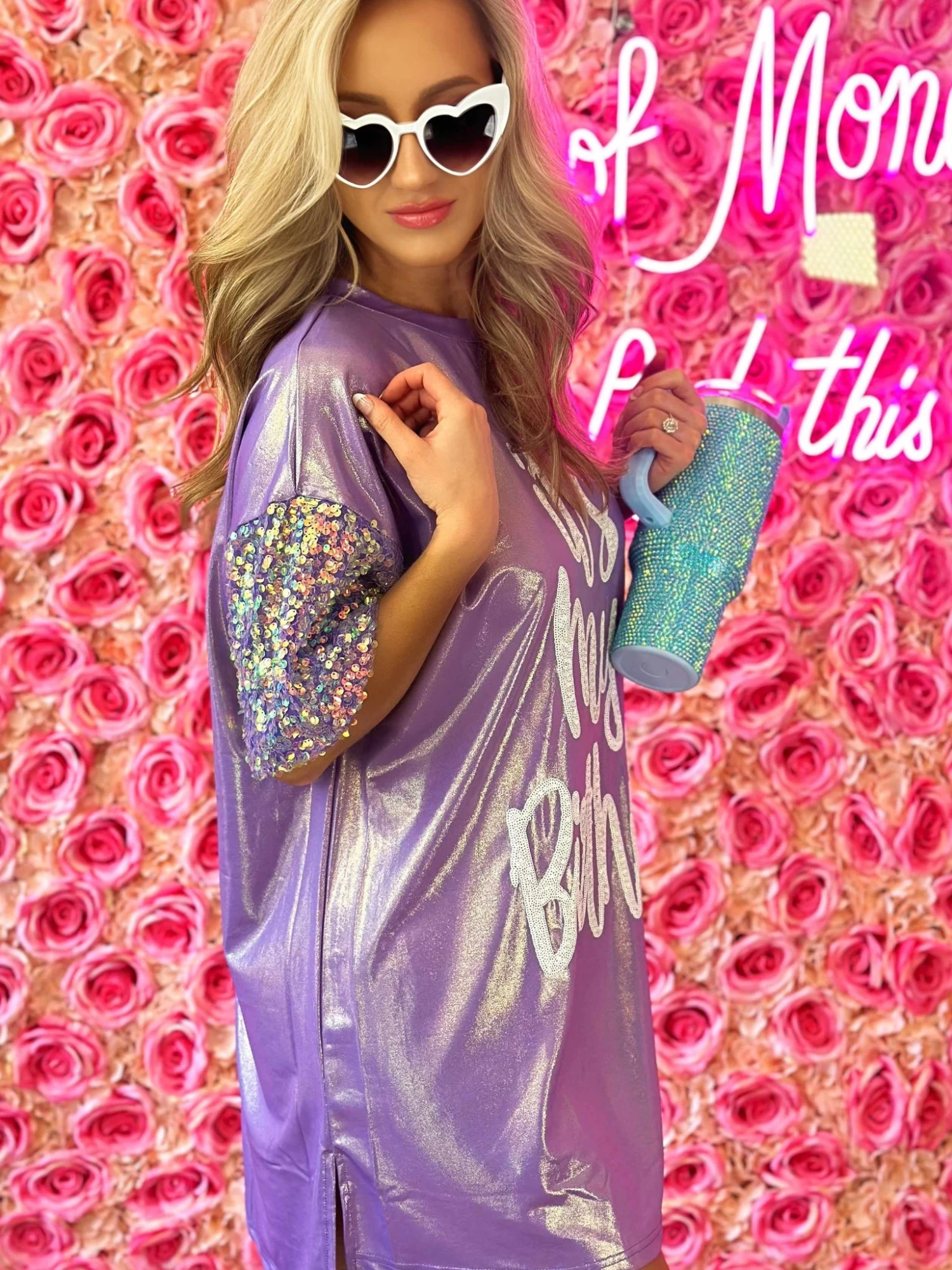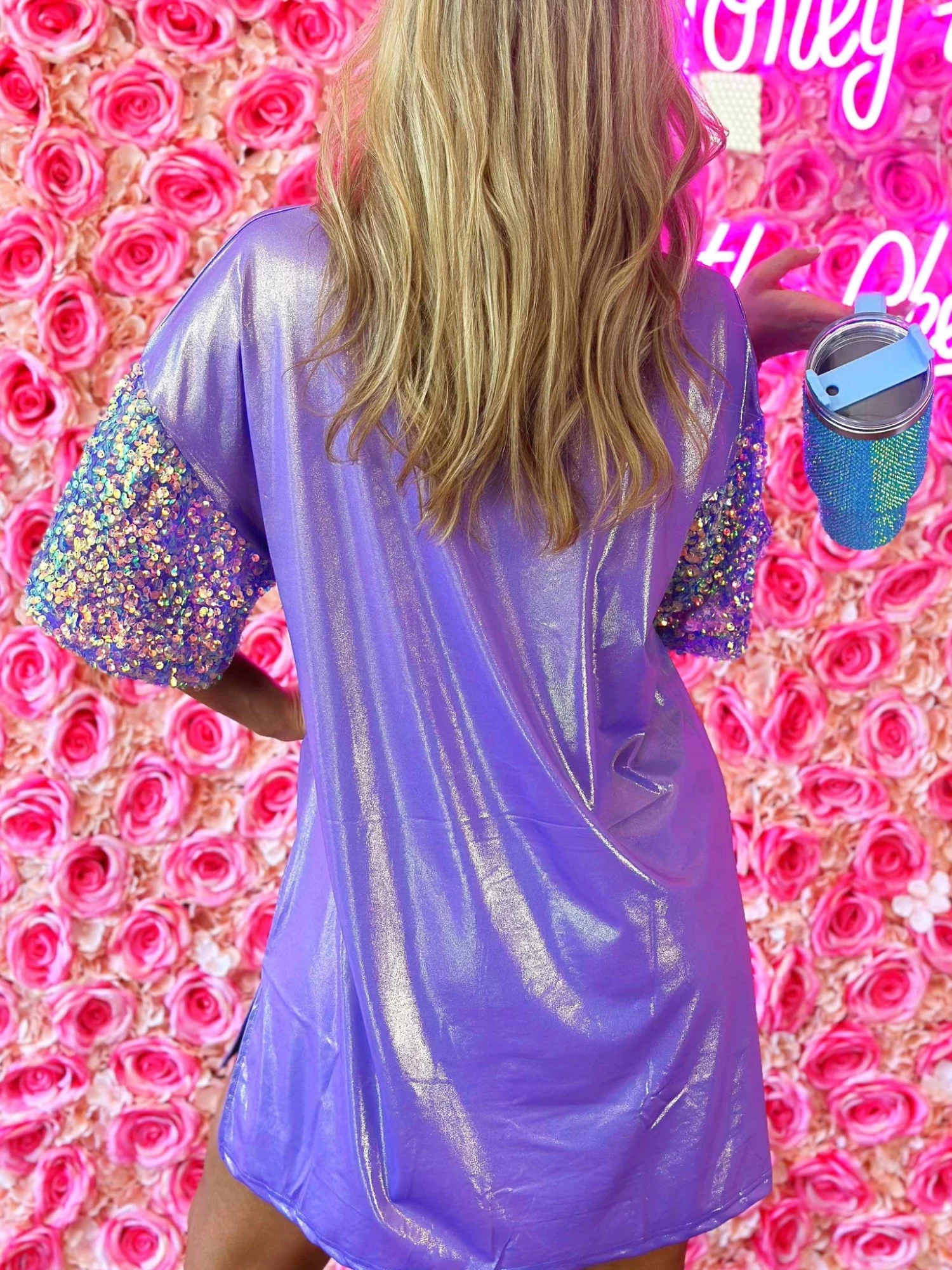 Lavender It’s My Birthday Sequin Shimmer Tunic Dress