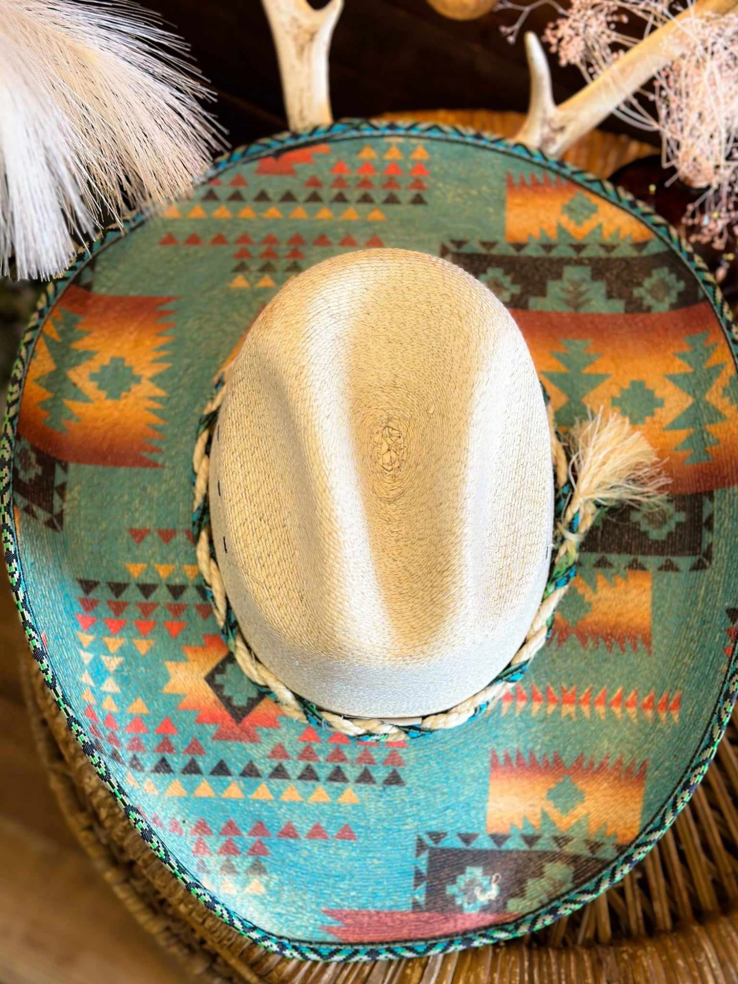 Natural Printed Straw Cowgirl Hat