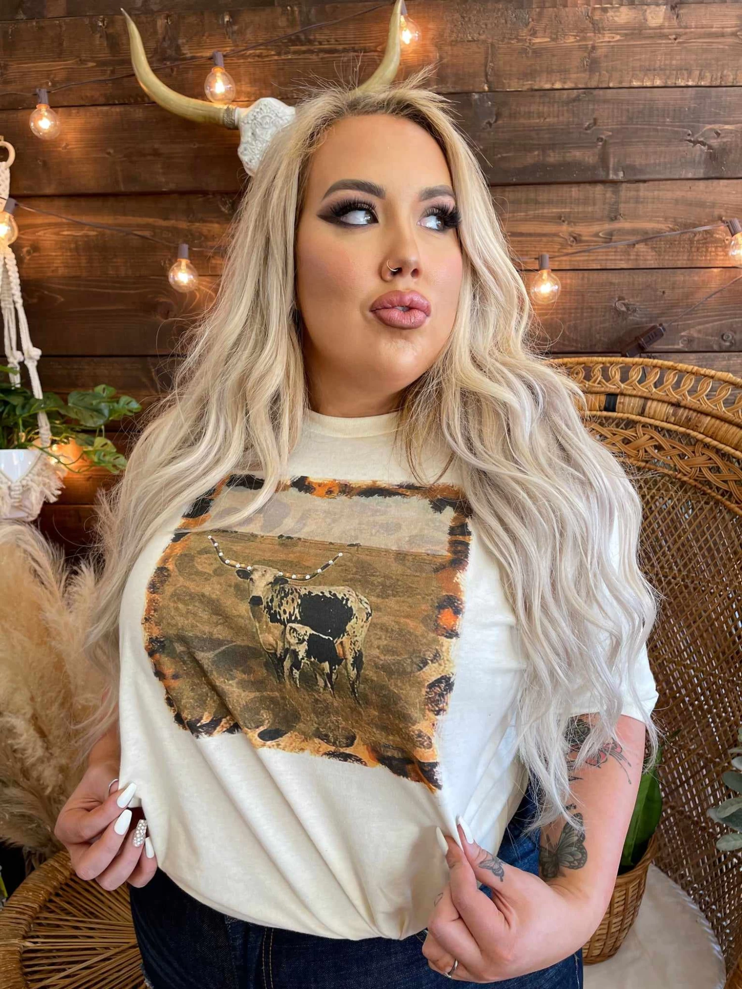 Leopard Longhorn Tee. The perfect tee for those wild and fun nights! Catch everyone’s eyes by keeping it casual or dressing it up! Printed on a unisex soft style tee!Â
