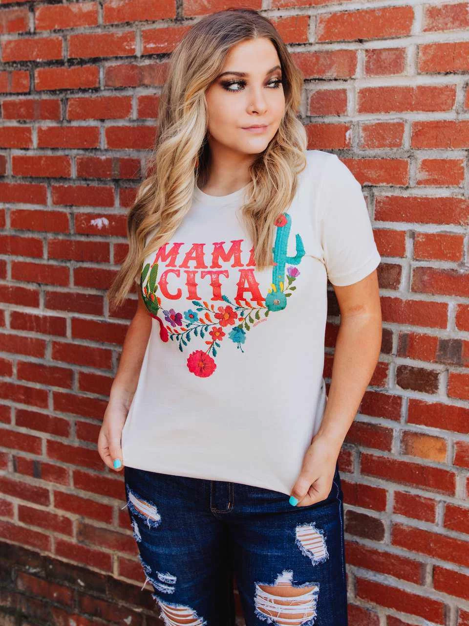 How cute is the Mamacita tee! The cactus and floral add the finishing touch! Printed on a soft style Bella Canvas Tee! Cream color.