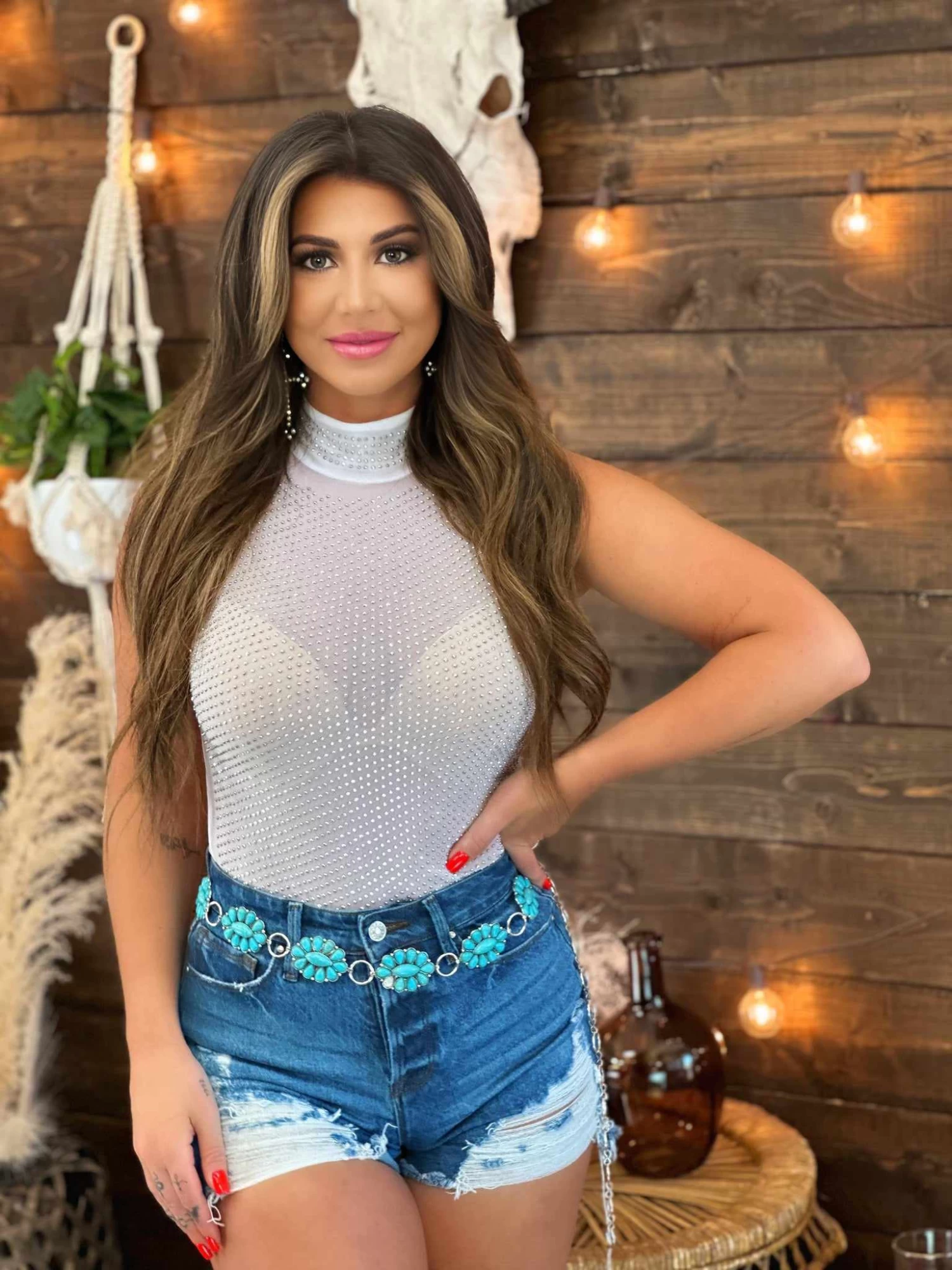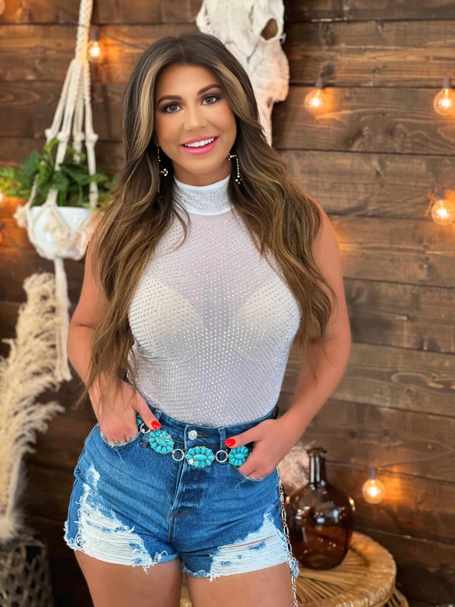 Be the life of the party in this sassy and sexy “Matching Vibes” Rhinestone Bodysuit! Perfect for festivals and concerts, it will be sure to turn heads with its shimmering rhinestone bling and white mesh silhouette. Layer it on for extra style points, and keep the vibes hoppin’ with its mock neck and zipper back. Get ready to shine! Make it sizzle!