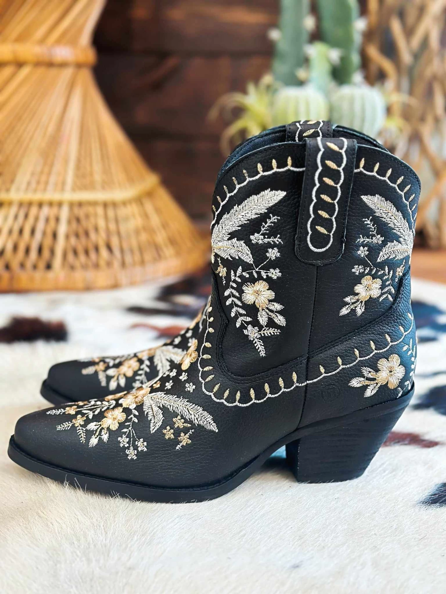 Black Floral Booties