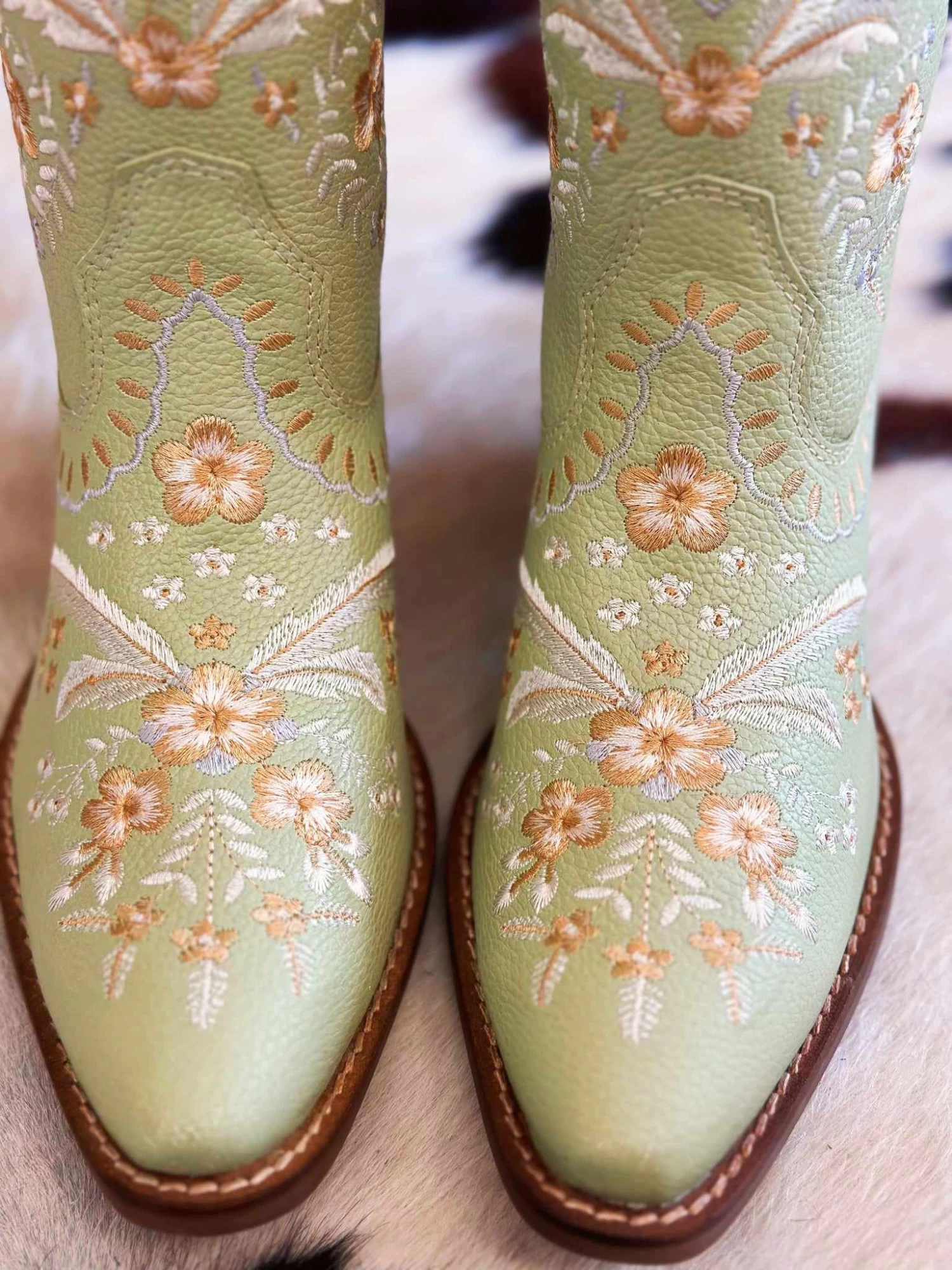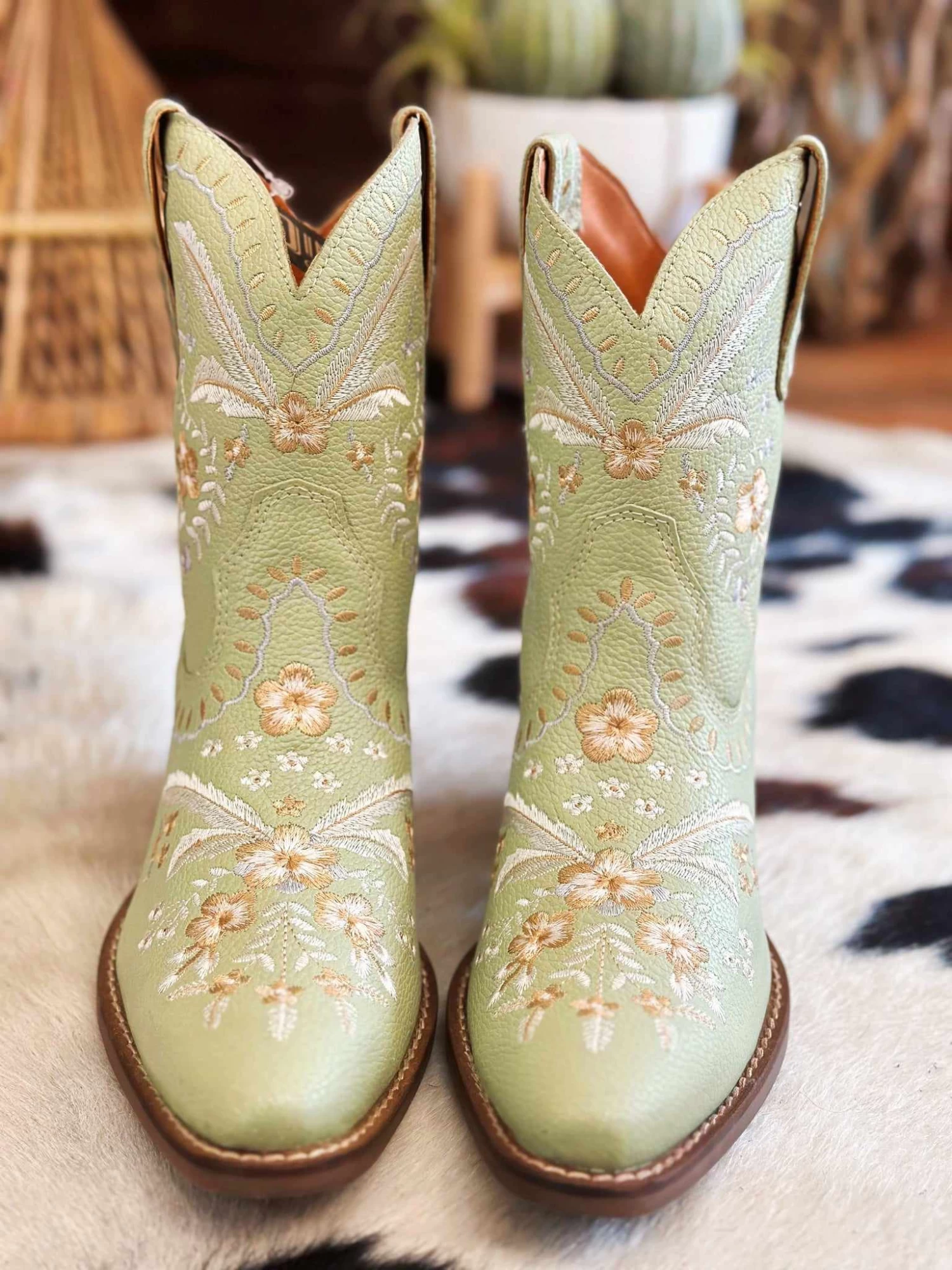 Prim Rose Booties – they leave you SPEECHLESS! The Prim Rose Bootie by Dan Post is the ultimate fashion statement! Get ready to soar in minty freshness with these fabulous booties. Featuring western-inspired embroidery, this luxe leather will have you absolutely blooming! Plus, in multiple colors, you’ll want to grab them all! Yee-haa! Made by Dingo from Dan Post.Â