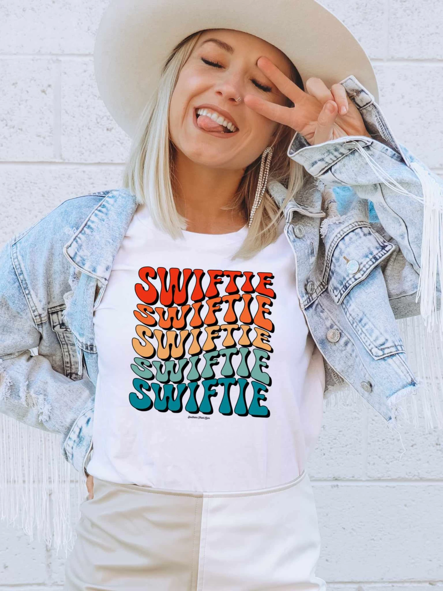 Retro Swiftie tee. This unisex essential fits like a well-loved favorite, featuring a crew neck, short sleeves and classic fit. Dual side seams ensure better fit over time. Designed with superior combed and ring-spun cotton, dyed and cut in the US.