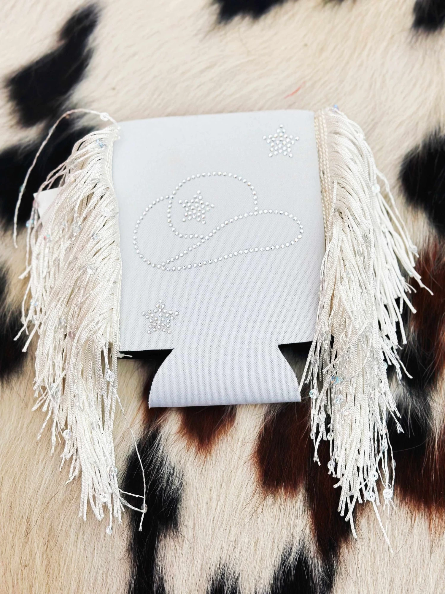 Perfect can sleeves to keep you drinks icy cold all summer long! With the sequin fringe and rhinestones, all the cowgirls will be drinking in style!