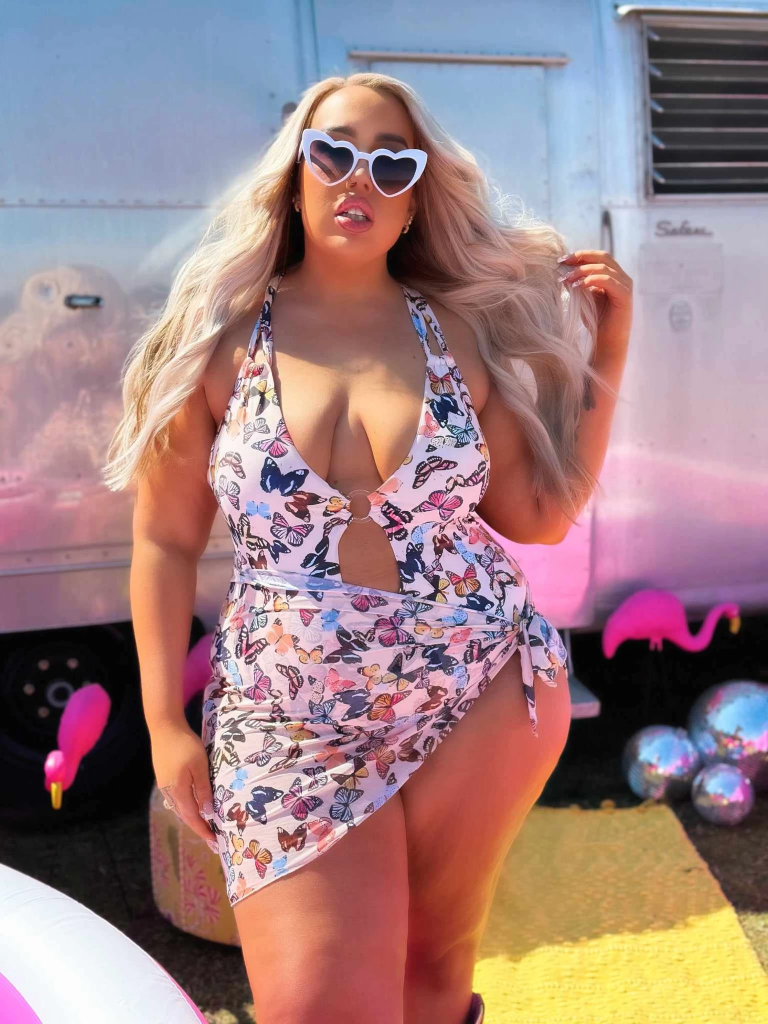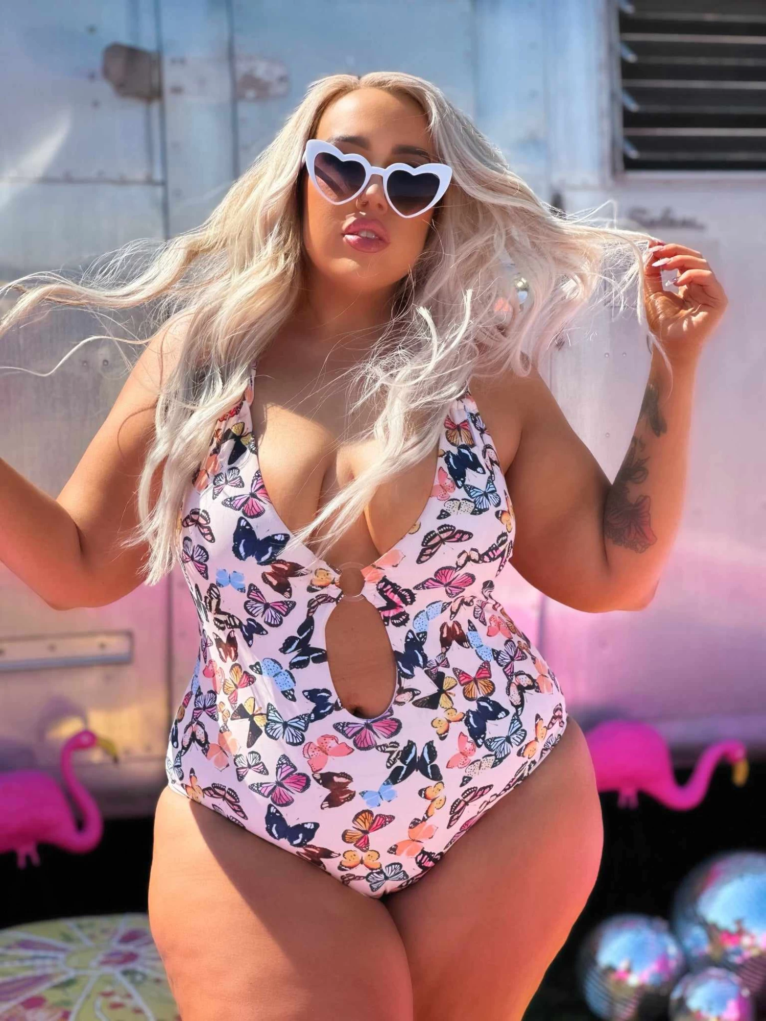 Rock the monokini trend with this sweet butterfly print one piece swimsuit! Featuring a deep v neckline, stomach cutout, and crisscross tie back, this flattering one piece bathing suit will be your favorite poolside look!