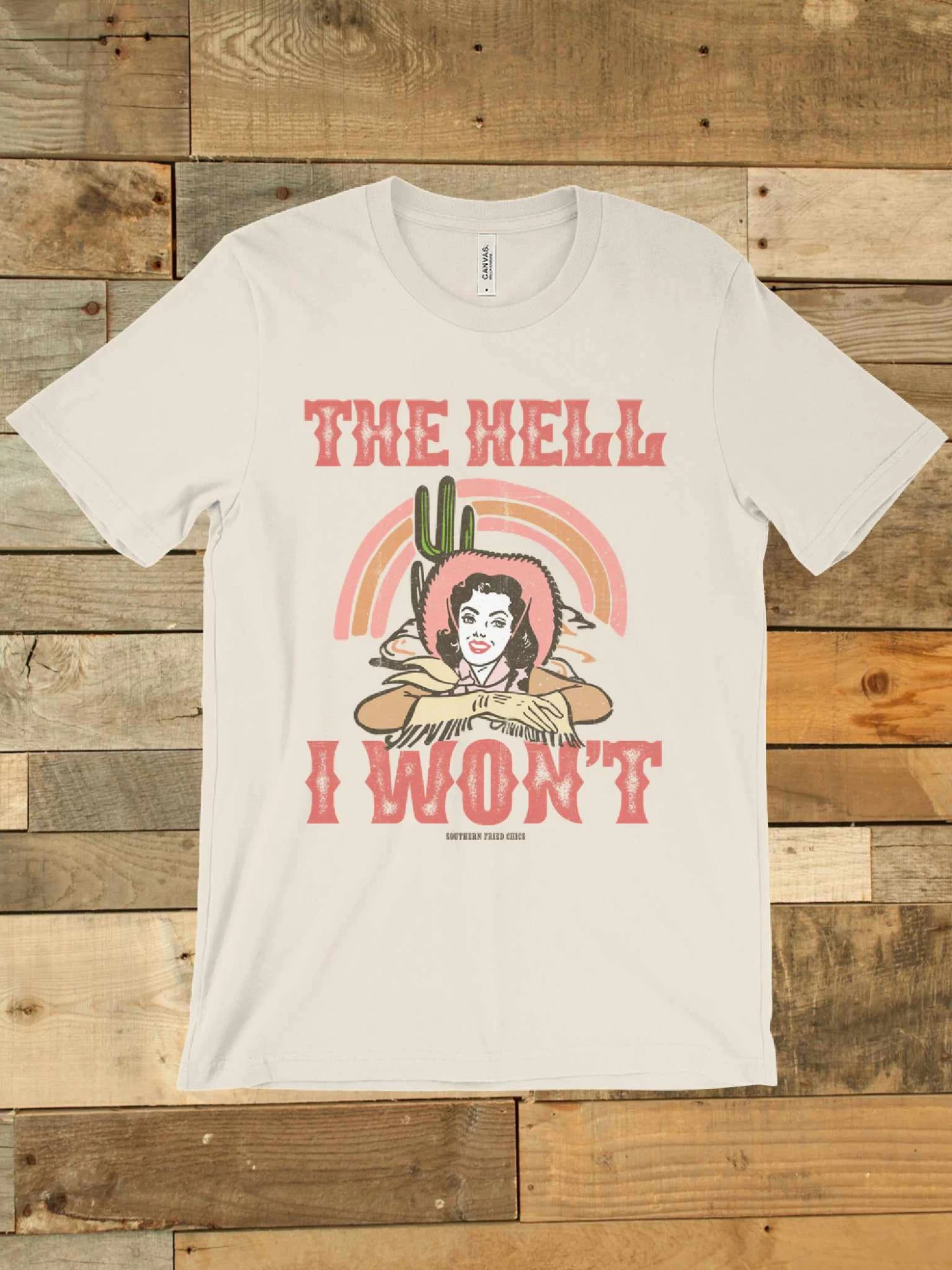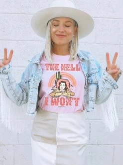 This western style graphic tee is for the feisty cowgirl in all of us! Featuring a crew neck, short sleeves and classic fit. Dual sideseams ensure better fit over time. Designed with superior combed and ring-spun cotton, dyed and cut in the US