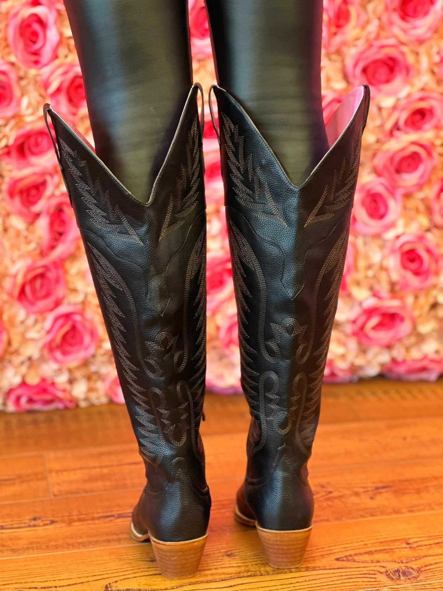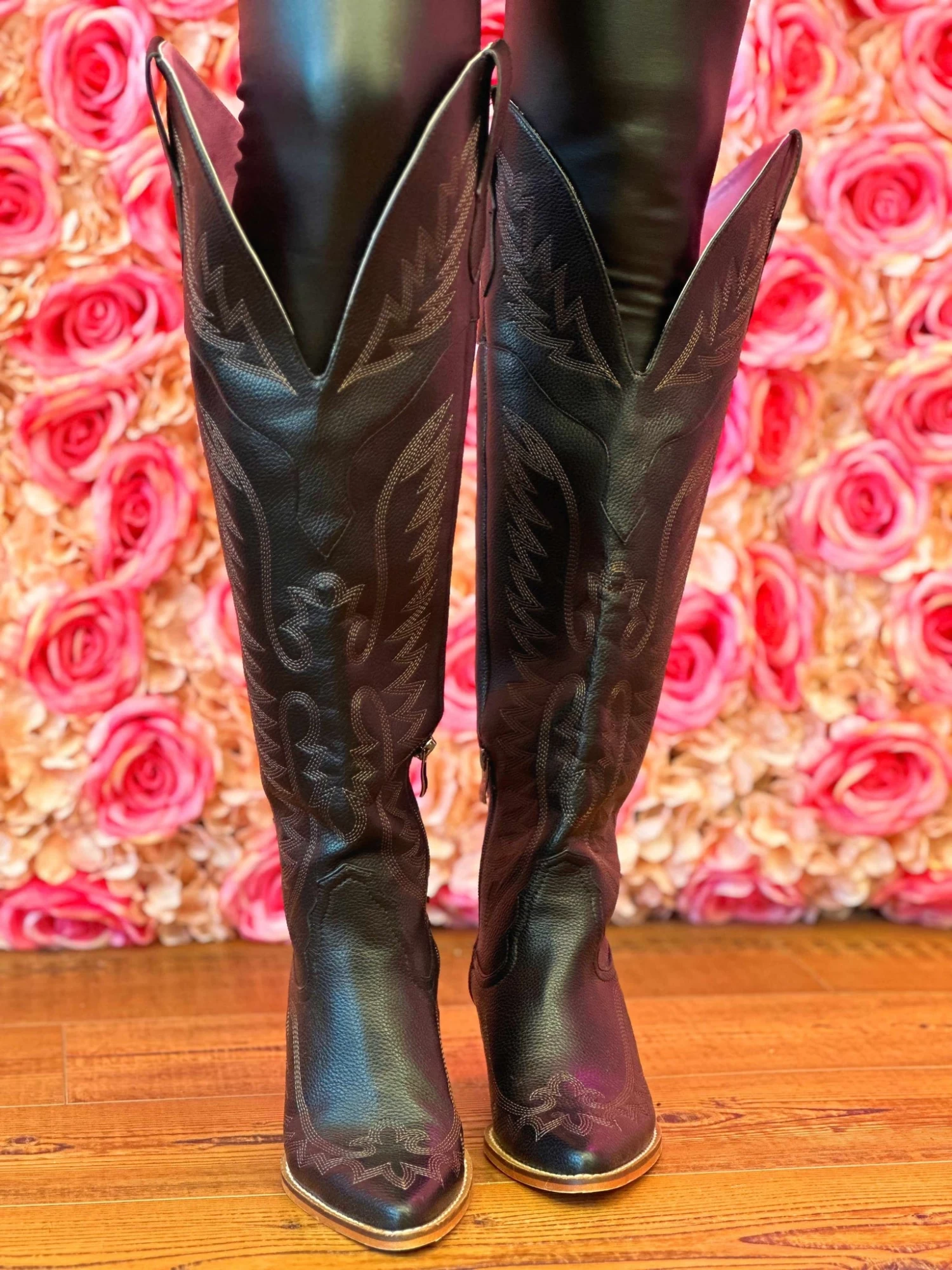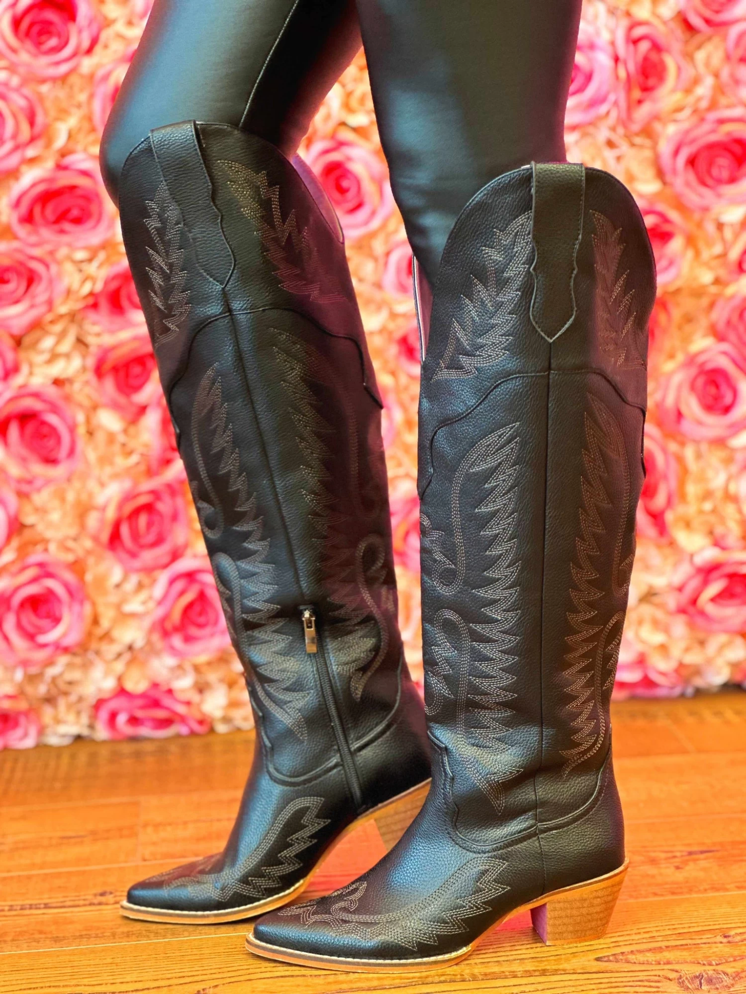 Nothing gives your confidence a boost like strutting around in a beautiful pair of cowgirl boots! Make them knee high boots and you’ll own the room! These vegan leather western boots feature a pointed toe, a short heel, and gorgeous stitching throughout! You’re sure to cherish these boots for years to come.