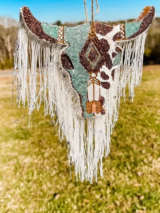 Turquoise And Cow Sassy Steer Fringe Freshie