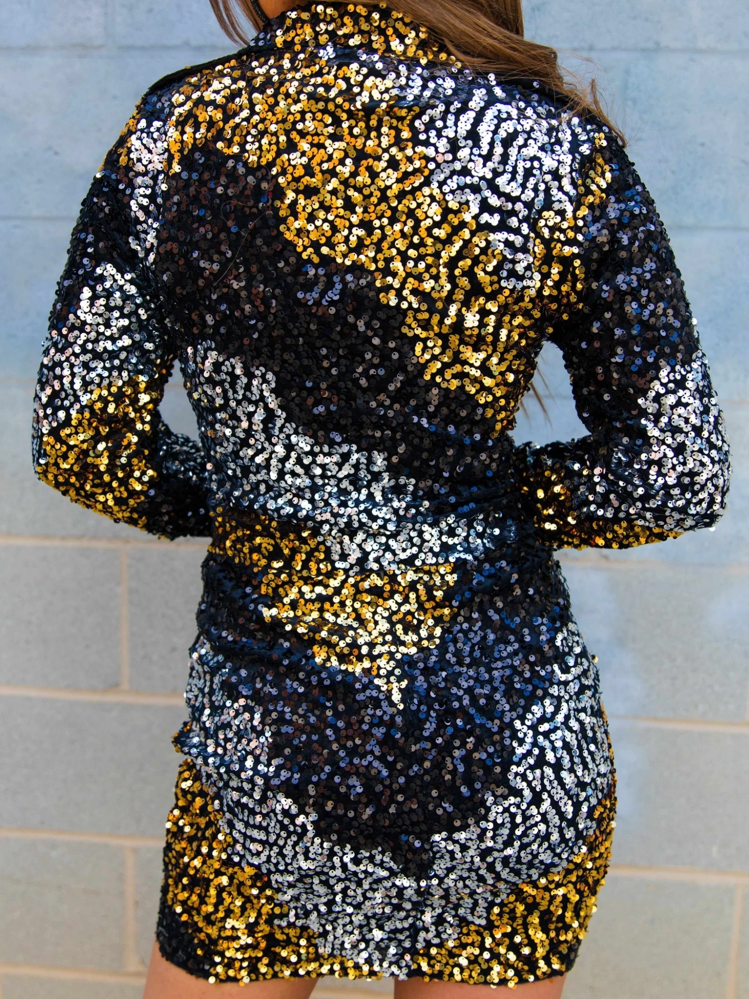 Black, Gold, and Silver Premium Sequin Moto Jacket